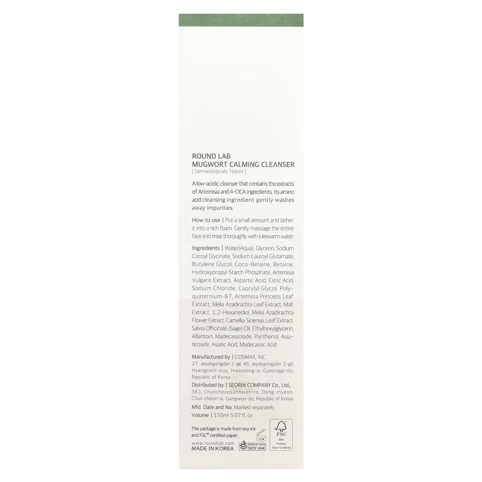Round Lab Mugwort Calming Cleanser, 5.07 fl oz (150 ml)