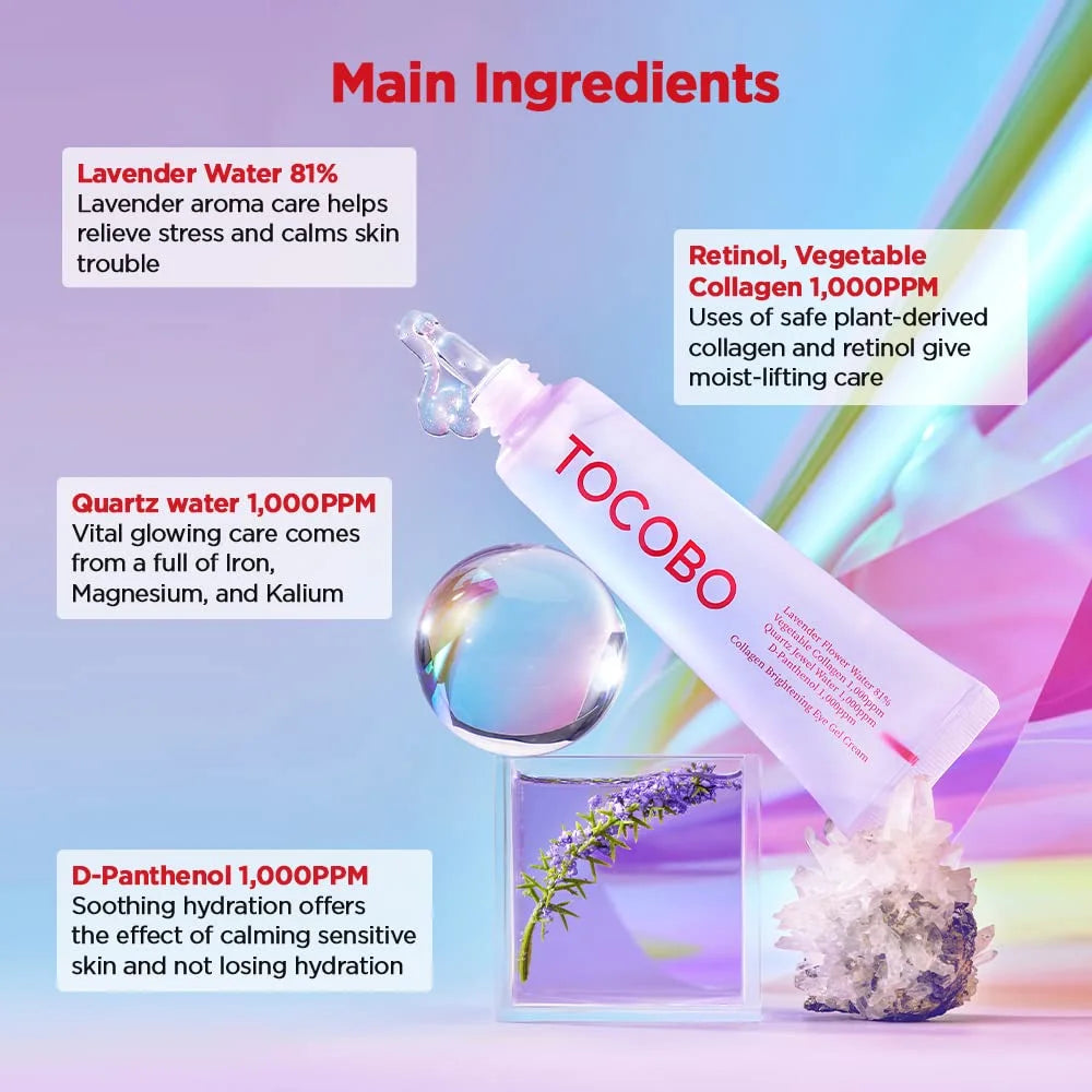 Revitalize tired eyes with the Tocobo Collagen Brightening Eye Gel Cream, a lightweight yet powerful treatment designed to target fine lines, puffiness, and dark circles. Enriched with hydrolyzed collagen, it helps improve elasticity and smooth the delicate skin around the eyes for a firmer, more youthful look. The refreshing gel-cream texture absorbs quickly without stickiness, making it ideal for both morning and nighttime routines. It delivers deep hydration while brightening the under-eye area, leaving skin looking more awake and radiant. Gentle and non-irritating, it's perfect even for sensitive skin. With consistent use, this eye gel cream helps diminish visible signs of fatigue and aging, giving your eyes a refreshed and lifted appearance. Whether you're battling long days, lack of sleep, or early signs of aging, this product delivers targeted care for brighter, firmer, and healthier-looking eyes. Hydrolyzed collagen works to improve skin elasticity and smooth fine lines around the eyes. It restores bounce to tired, sagging skin while strengthening the delicate eye area. Consistent use supports long-term firmness and vitality. Packed with brightening ingredients to reduce dullness and uneven tone under the eyes. Helps minimize the appearance of dark circles caused by fatigue or stress. Leaves the eye area looking fresher and more radiant. Lightweight yet deeply moisturizing, this formula replenishes hydration without feeling heavy. Absorbs quickly and layers well under makeup, preventing dryness throughout the day. Perfect for both AM and PM use. Provides a cooling, refreshing effect that helps reduce puffiness around the eyes. Ideal for tired mornings or after long hours of screen time. Revives skin for a more energized, youthful look. Free from parabens, artificial fragrance, and harsh irritants that can stress sensitive skin. Dermatologically tested to ensure safety and comfort for the delicate eye area. Suitable for all skin types, including sensitive eyes.